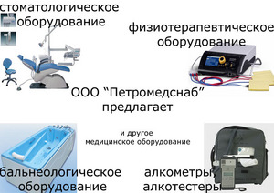 Компания "Петромедснаб" занимается комплексными поставками медицинского оборудования в стоматологические кабинеты, ветеринарные клиники, спа-центры, салоны красоты, косметологические кабинеты, офтальмологические кабинеты, различные виды лаборатории и другие медицинские учреждения медицинским оборудованием, алкометрами, алкотестерами, алкотекторами ЕСЛИ ВЫ ОТКРЫВАЕТЕ СТОМАТОЛОГИЧЕСКУЮ КЛИНИКУ, КОСМЕТОЛОГИЧЕСКИЙ КАБИНЕТ, СПА-ЦЕНТР ИЛИ ДРУГОЕ МЕДИЦИНСКОЕ УЧРЕЖДЕНИЕ ЗАЙДИТЕ НА НАШ ОФИЦИАЛЬНЫЙ САЙТ: HTTP://WWW.MED-SNAB.RU Здесь Вы найдете большой выбор оборудования для оснащения любого медицинского учреждения по демократичным ценам. НЕ ПЕРЕЖИВАЙТЕ! ЕСЛИ ВЫ НЕ НАШЛИ НУЖНУЮ ВАМ ИНФОРМАЦИЮ О ТОМ ИЛИ ИНОМ АППАРАТЕ ВЫ МОЖЕТЕ ОТПРАВИТЬ НАМ ЗАЯВКУ ПОЗВОНИВ ПО ТЕЛ. ИЛИ ПО ЭЛЕКТРОННОЙ ПОЧТЕ. Наши телефоны: (812) 438-10-48, 554-03-88, 554-03-79 E-mail: medsnab@petromedsnab.ru (общий почтовый ящик), alcot@petromedsnab.ru, espopova@petromedsnab.ru (алкометры, стерилизация) stoma@petromedsnab.ru, mironova@petromedsnab.ru (стоматологического оборудование) irina@petromedsnab.ru (бальнеологическое оборудование, ветеринарное, косметологическое, физиотерапевтическое оборудование) elena@petromedsnab.ru (офтальмологическое оборудование) avt@petromedsnab.ru, rimma@petromedsanb.ru (лаборатория, диагностика, расходные материалы) КАТАЛОГ ПРОДУКЦИИ ПОСТАВЛЯЕМОЙ КОМПАНИЕЙ ПЕТРОМЕДСНАБ