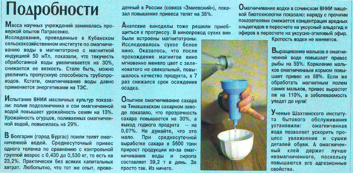 Вы можете обратиться за более детальной информацией к производителю "Статья из журнала Огонёк N36 об омагничивании жидкостей".